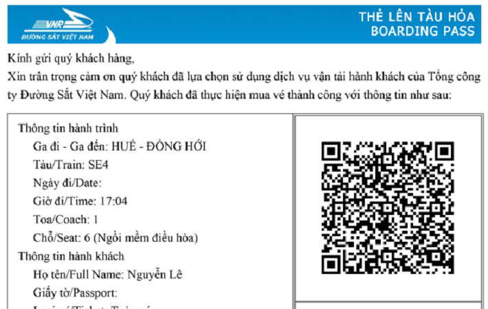 Như vậy hành khách có thể chủ động in vé tại nhà, in vé tại ga hoặc dùng mã QR điện tử để tiết kiệm thời gian và đảm bảo thuận tiện khi đi tàu.