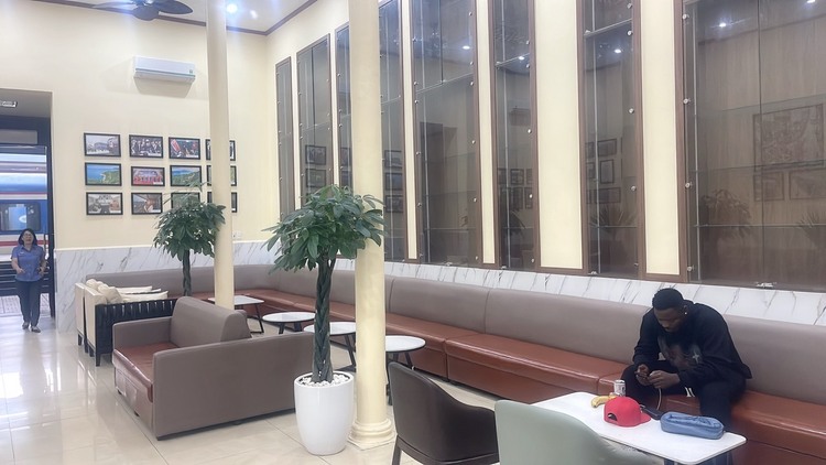 Tại Lào Cai: Không có phòng chờ và chỉ có quầy bán vé ở bên trái ga Lào Cai