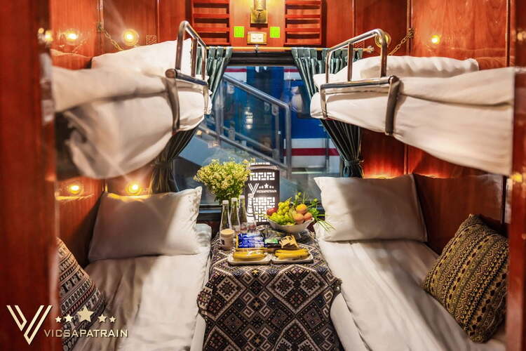 Thông tin vé tàu Vicsapa Train Hà Nội - Sapa chuyến tàu đêm VIP gồm 4 khoang cao cấp, thiết kế sang trọng với tiện nghi hiện đại, mang đến trải nghiệm nghỉ dưỡng đẳng cấp ngay trên hành trình. Đặt vé Vicsapa Train ngay hôm nay để giữ chỗ đẹp và bắt đầu chuyến du lịch Sapa trọn vẹn!