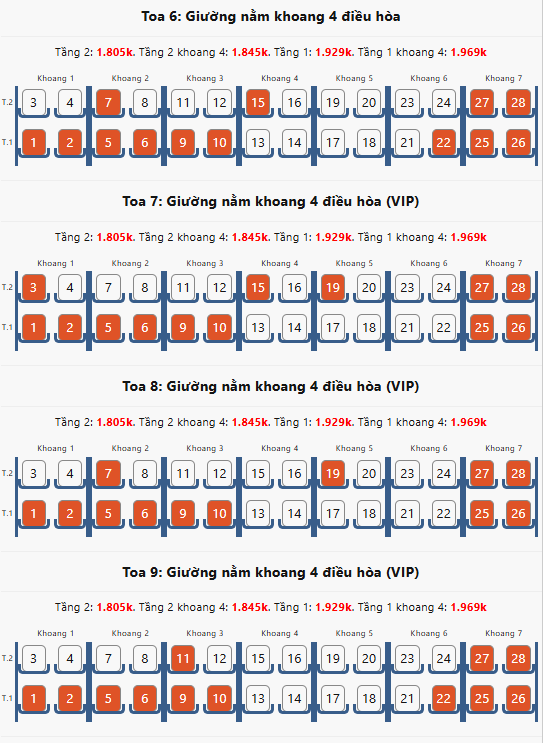 Nằm khoang 6 (Giường tầng 2) | BnT2 | 250.000 VNĐ | 300.000 VNĐ |