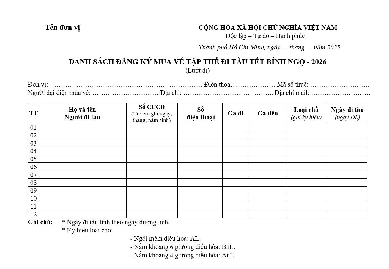 Đăng ký mua vé tàu tập thể Tết Bính Ngọ 2026